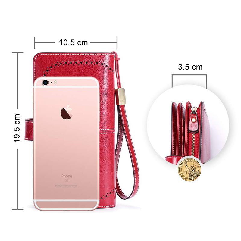 • PERFEKT STORLEK OCH STRUKTUR: 19,5 x 10,5 x 3,5 cm, mycket elegant, du kan helt enkelt hålla i den eller lägga den i väskan. Kortplats, fotoplats, fakturaplats, väska med dragkedja, mobilväska, uppfyller dina behov.