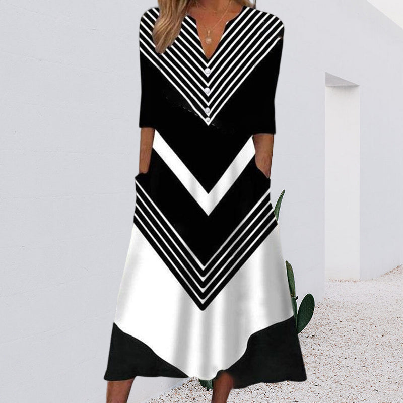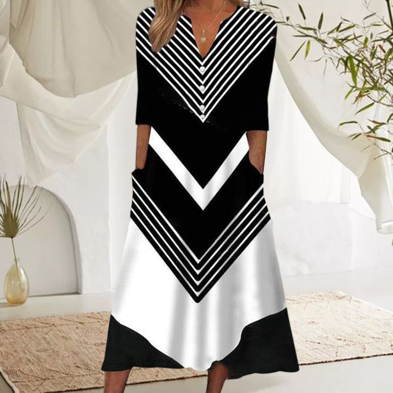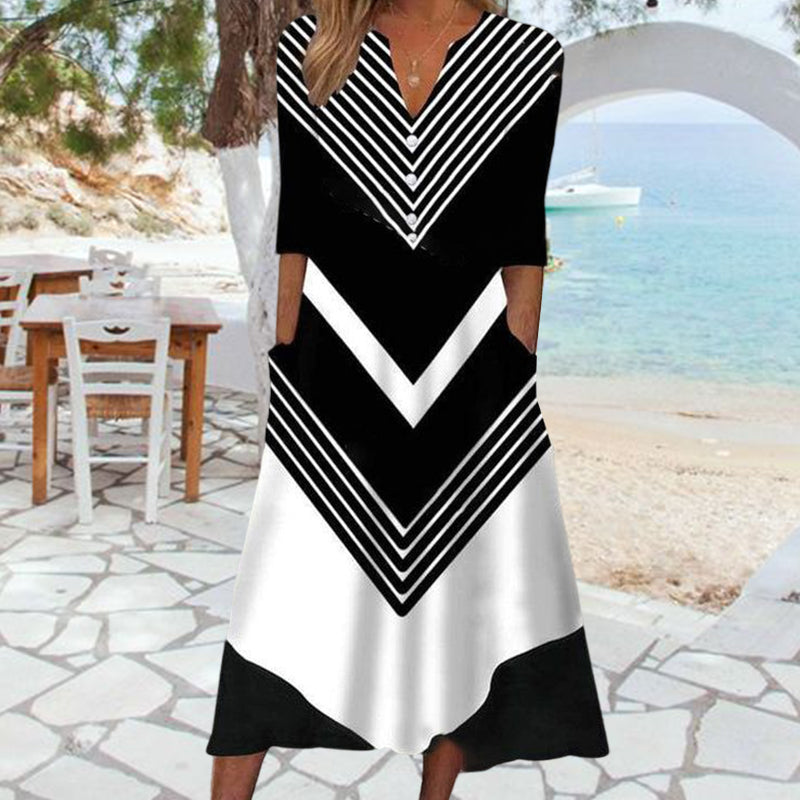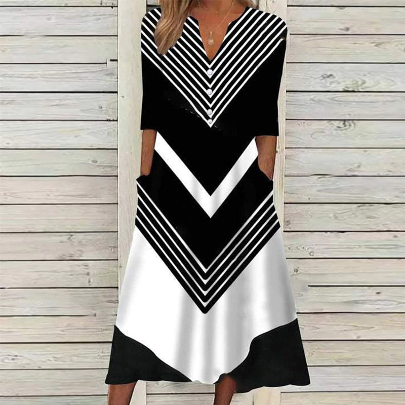 Sjöman randig svart och vit midiklänning med sidficka
