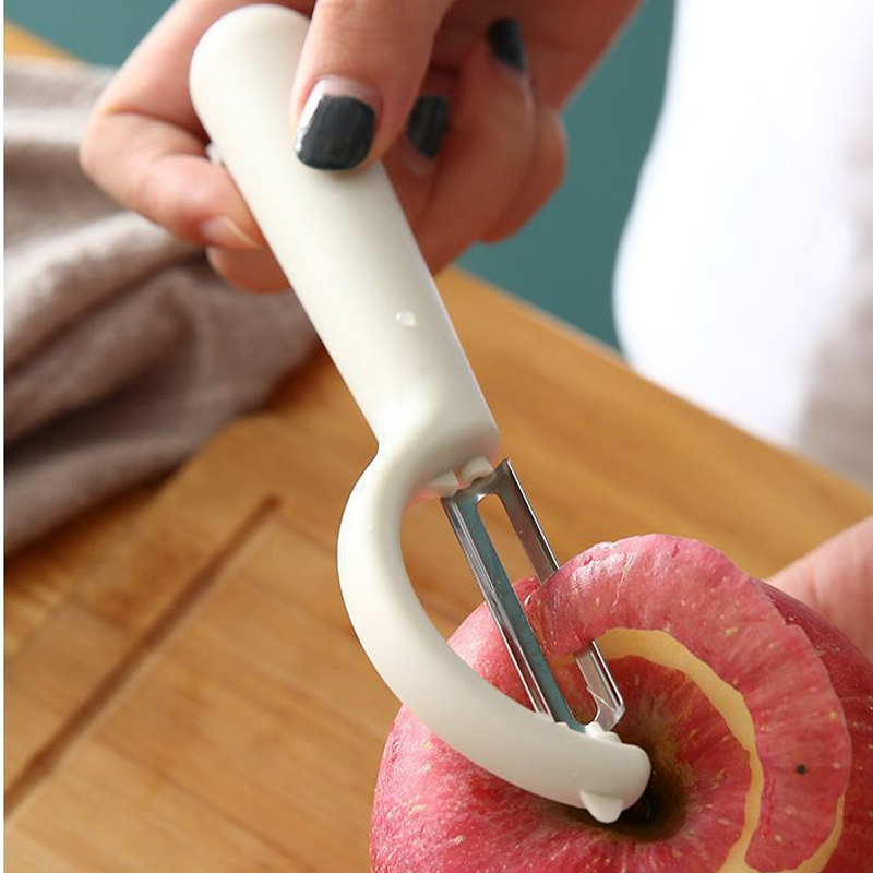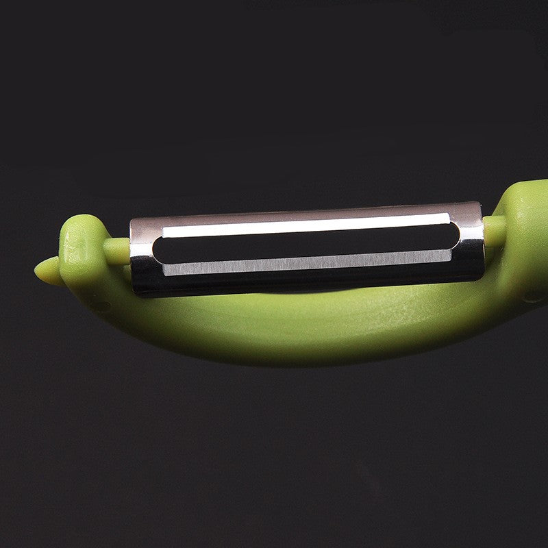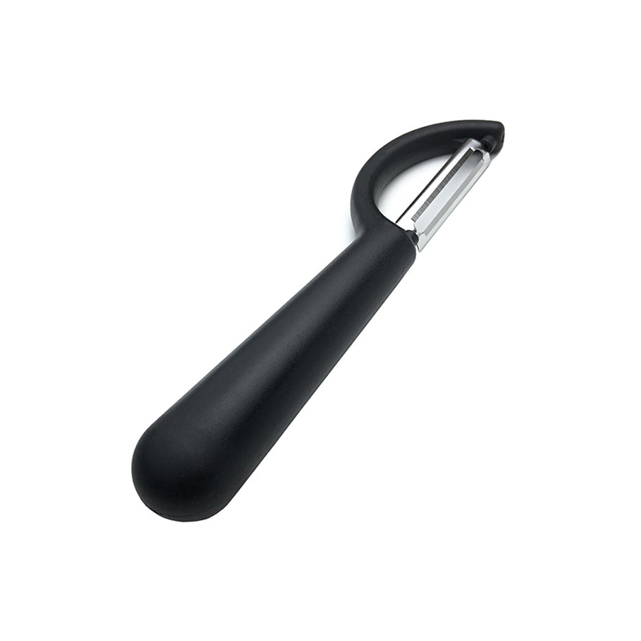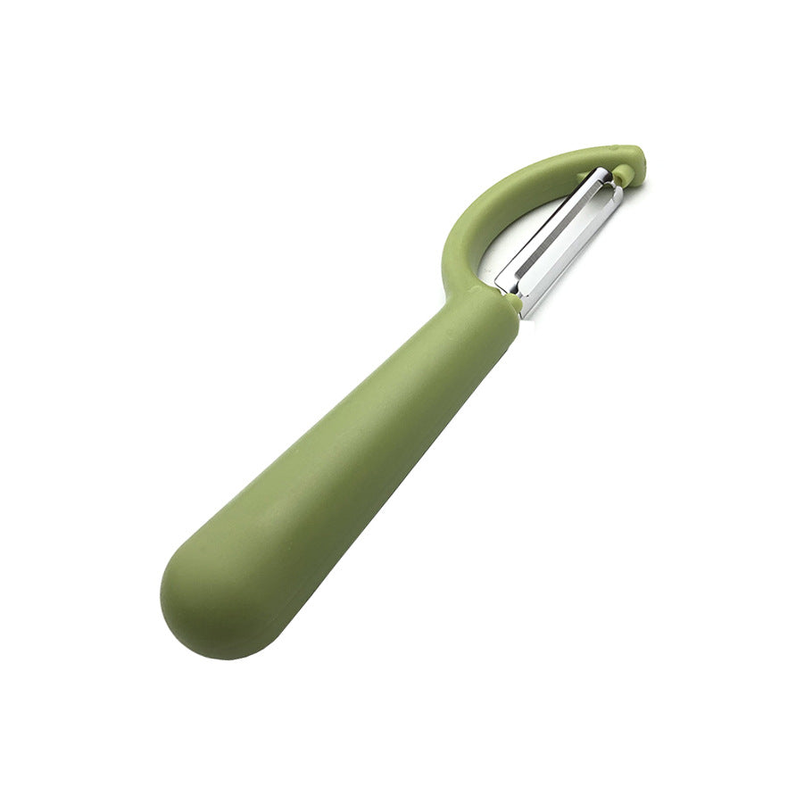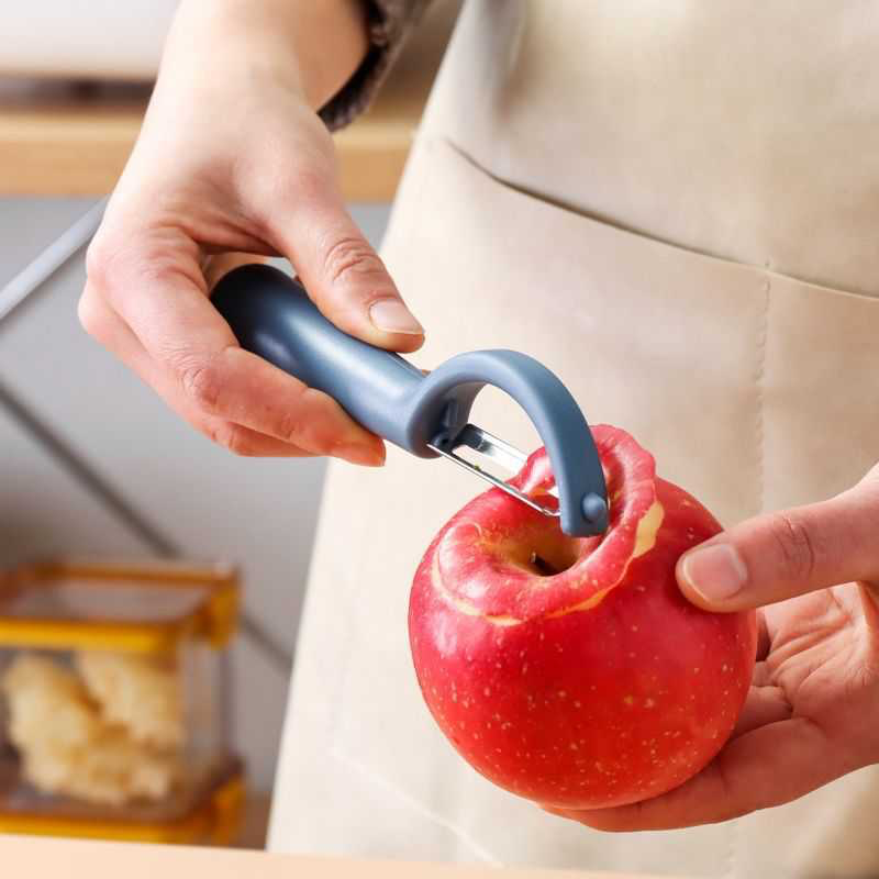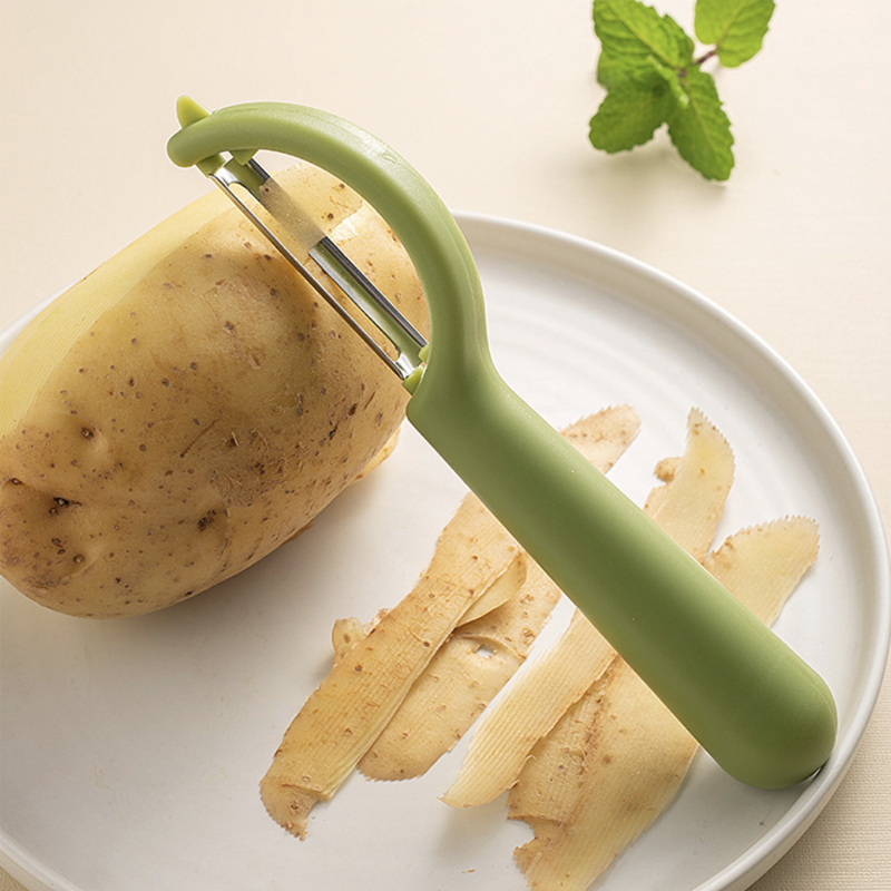 • [Grävande design]: Framsidan av grönsaksskalaren har en grävande design, som används för att ta bort ojämna skal och knoppögon så att frukt och grönsaker kan skalas av på ett renare sätt.