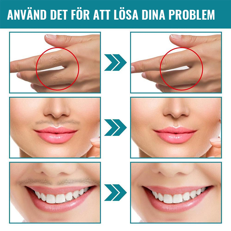 • Går djupt in i hårrötterna för att lösa upp hårstrukturen och lämnar din hud slät och hårlös