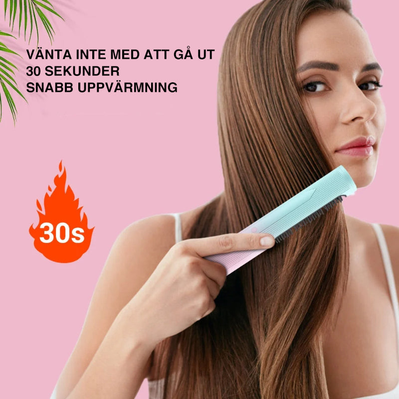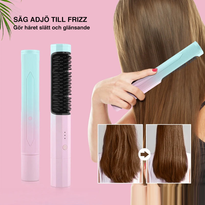 • Denna sladdlösa uträtningsborste reder snabbt ut rörigt hår, slätar ut friss och hjälper dig att enkelt lösa alla typer av hårproblem och lämnar ditt hår glänsande och slätt.