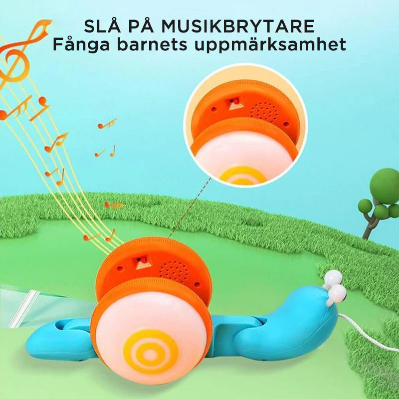 Simulera en söt snigelleksak. Barnet kan dra runt det, vilket kan förbättra flexibiliteten, hand-öga-koordinationen och manövrerbarheten. Med färgglada ljus och musik drar den till sig barnets uppmärksamhet och uppmuntrar barnet att lära sig språk.