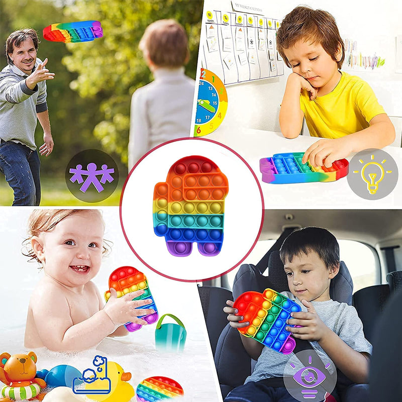 • Lätt att bära: Pop it fidget leksaker är lätta att bära och kan spelas oavsett och vart du än går, till exempel kontor, skolor, parker och vilken plats du vill bära. Det är perfekta handspel.