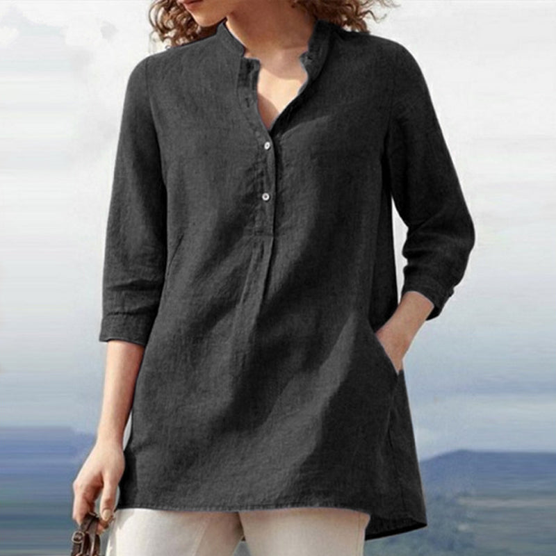• Den här trekvartsärmade ståkrageblusen för kvinnor kan bäras med en mängd olika jeans och stövlar på kontoret eller på semestern, och är också ett bra komplement till en snygg look med en kappa.