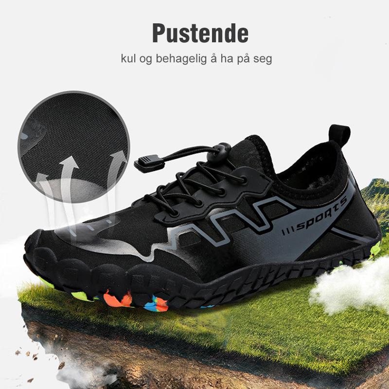 • Halkfri yttersula --- Slitstark halksäker gummisula med femfingersdesign som passar tårna. Den slitstarka sulan skyddar dina fötter från att skadas av vassa föremål.